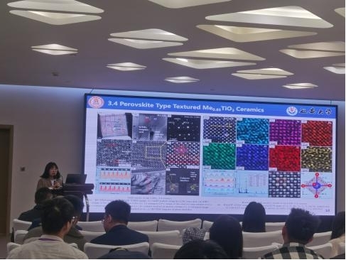 我院青年教师曹舒尧、张萍分别作题为《铌酸锶钾基陶瓷光致变色反应及光吸收行为的可控调制》、《非化学计量比高熵织构陶瓷的微观结构调控与热电性能》的邀请报告。曹舒尧副教授及张萍副教授作为分会场主持人,分别主持了13日上午“敏感材料及其应用”及“热电材料”分会场的学术报告。