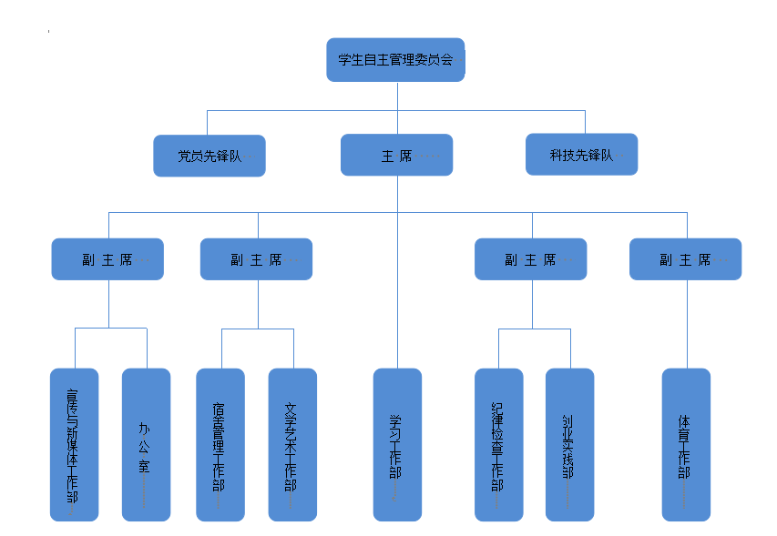 学生自主管理委员会下设主席团、党员先锋队、科技先锋队