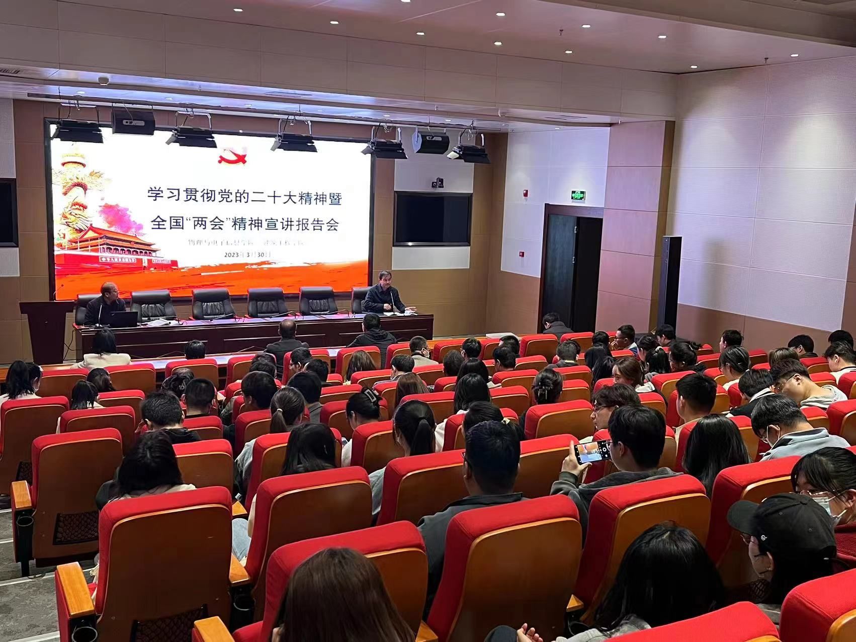 3月30日下午,我院与建工学院联合在新城校区图书馆一楼报告厅举办党的二十大精神暨全国“两会”精神宣讲报告会,两院师生党员代表150余人参会。报告会由马克思主义学院崔海亮教授主讲,物电学院党委书记常胜伟主持。