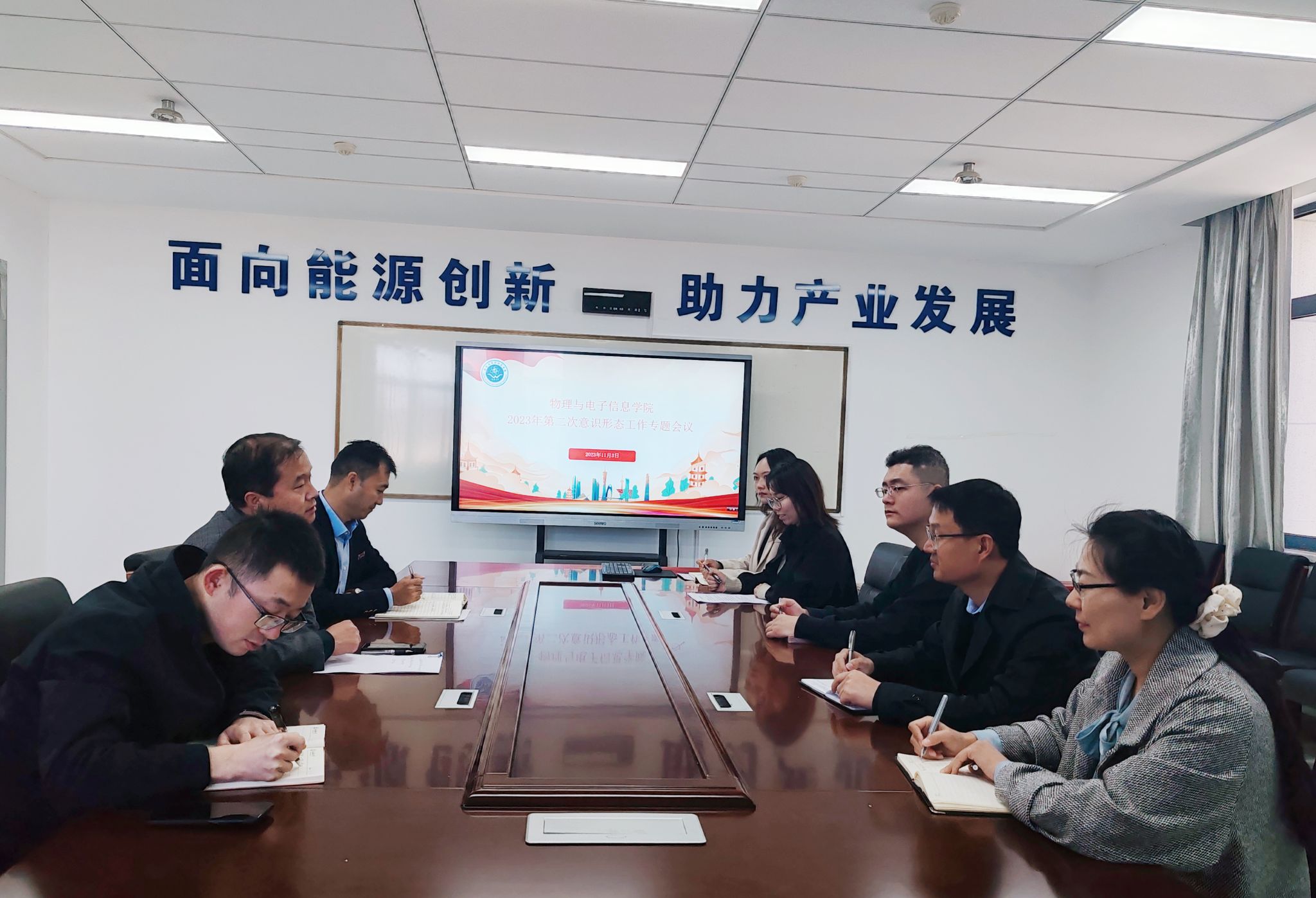 会议强调,理论学习最终要落脚到贯彻落实:一要通过各种方法、各个维度加强习近平新时代中国特色社会主义思想的学习;二要持续强化学习教育,学院通过全体教职工大会,支部大会,辅导员通过进早操、进课堂、进宿舍和班会,引领全体师生统一思想、团结一致;三要强化意识形态工作,推动“三全育人”,教职工要用好课堂主阵地,严格落实课程思政;四要立足学院建设,以习近平新时代中国特色社会主义思想为指导,为事业发展形成合力,凝聚力量推进有组织科研。