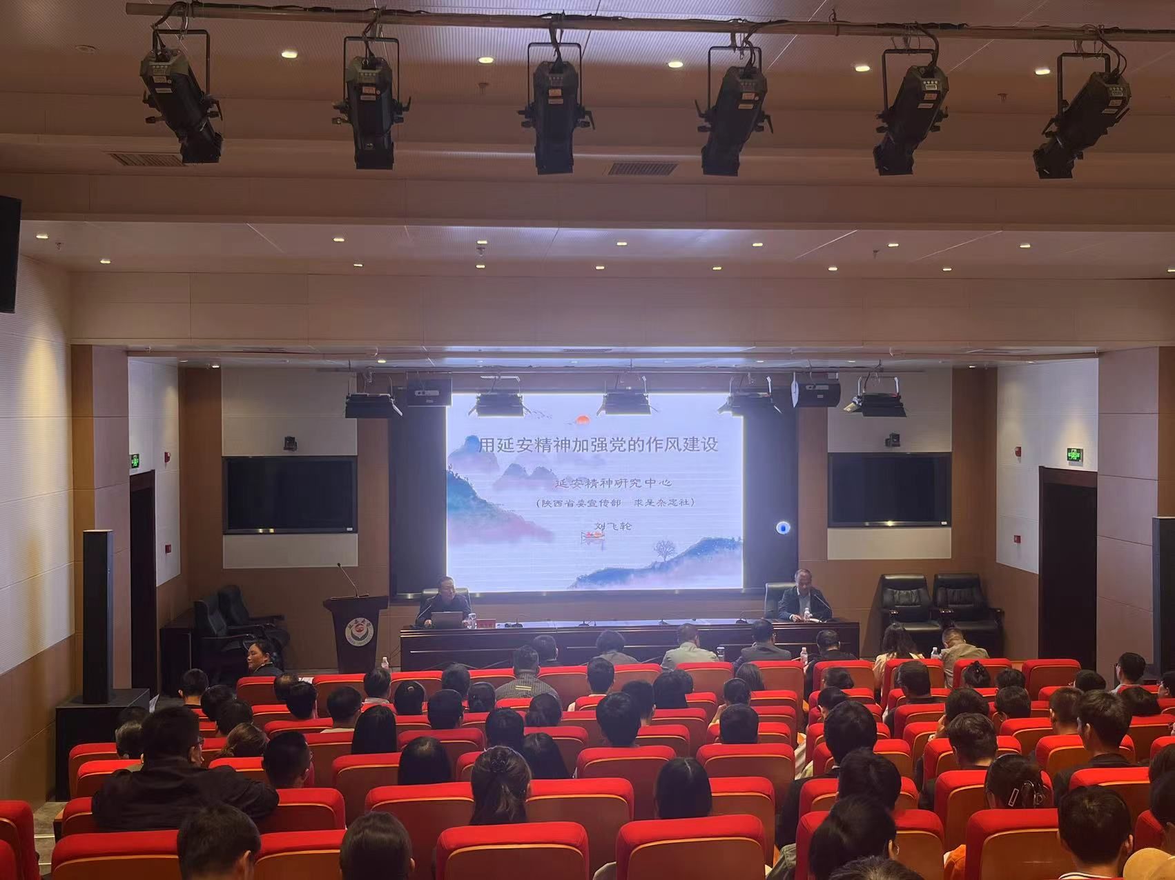5月15日下午,我院在图书馆一楼报告厅举行深入贯彻中央八项规定精神学习教育辅导报告,陕西省延安精神研究中心办公室兼科研部主任刘飞轮以“用延安精神加强党的作风建设”为题作专题辅导。我院和建工学院师生共180余人参加,报告会由建工学院党委书记赵耀锋主持。
