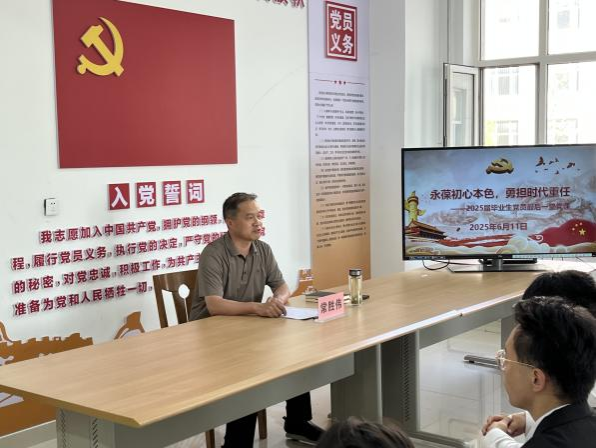 为深入贯彻中央八项规定精神学习教育,引导毕业生党员严格遵守党的纪律,系好廉洁的 “第一粒扣子”,以过硬的党性修养和优良的作风素养迈向人生新征程,6月20日,院党委书记常胜伟在13号公寓楼党团员活动室为2025届毕业生党员讲授主题为《永葆初心本色,勇担时代重任》的专题党课。