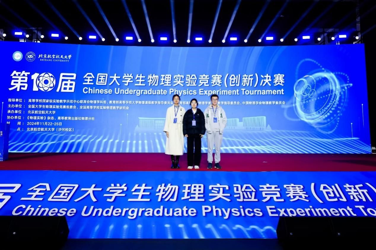 11月24日,由高等学校国家级实验教学示范中心联席会物理学科组、教育部高等学校大学物理课程教学指导委员会、教育部高等学校物理学类专业教学指导委员会和中国物理学会物理教学委员会指导,全国大学生物理实验竞赛组委会和全国高等学校实验物理教学研究会主办,北京航空航天大学承办的“第十届全国大学生物理实验竞赛(创新)”(简称CUPET)在北京落下了帷幕。我校jcjc5500公海贵宾会组织队伍参加了比赛,获得:一等奖1项,团队成员:云欣烨、赵阳、席成杰(石延梅指导);三等奖3项,团队1成员:赵敏杉,拓梦琪(苗红梅、杨能训指导);团队2成员:王思悦,梁玉龙,蒋敏(朱小敏、曹冬梅指导),团队3成员:屈智峰 王琬婷 马阳 文凯 黎金荣(杨智敏指导)。优秀奖2项,团队1成员:胡云,王安娜;团队2成员:周璇,穆鑫,赵唯邑,何洋,汤宇康