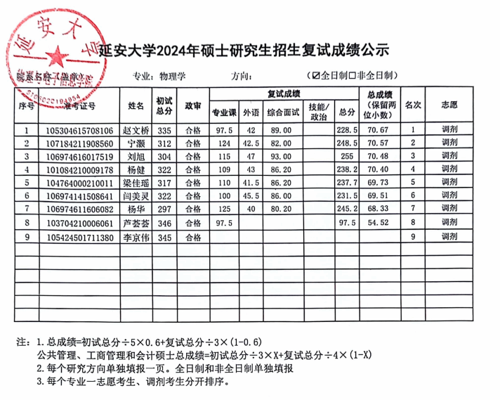 依照我院2024年硕士研究生复试工作实施方案,安排在2024年4月10日的物理学调剂考生复试工作已经圆满结束,现将具体的复试成绩进行公示,公示时间为十个工作日。