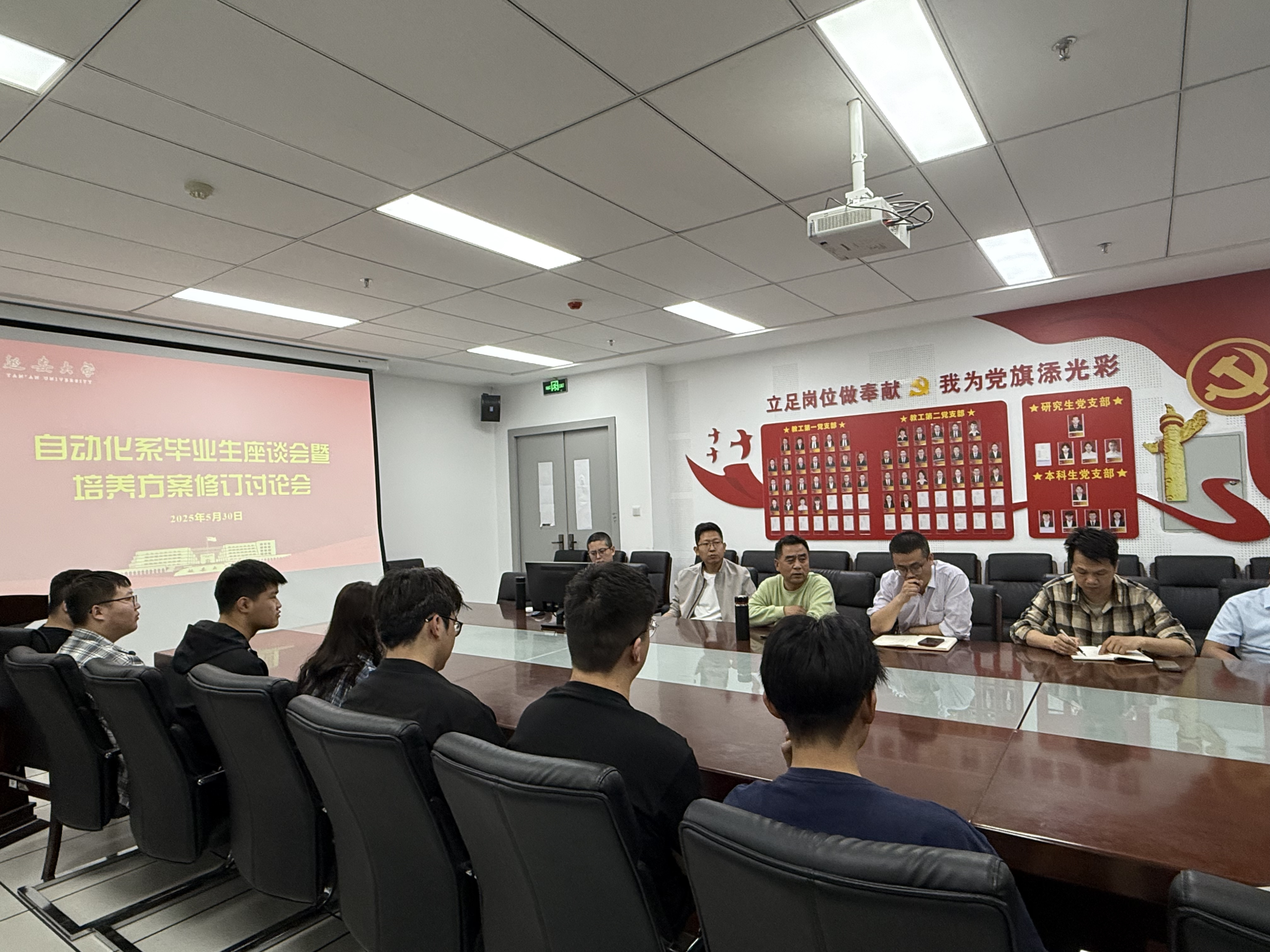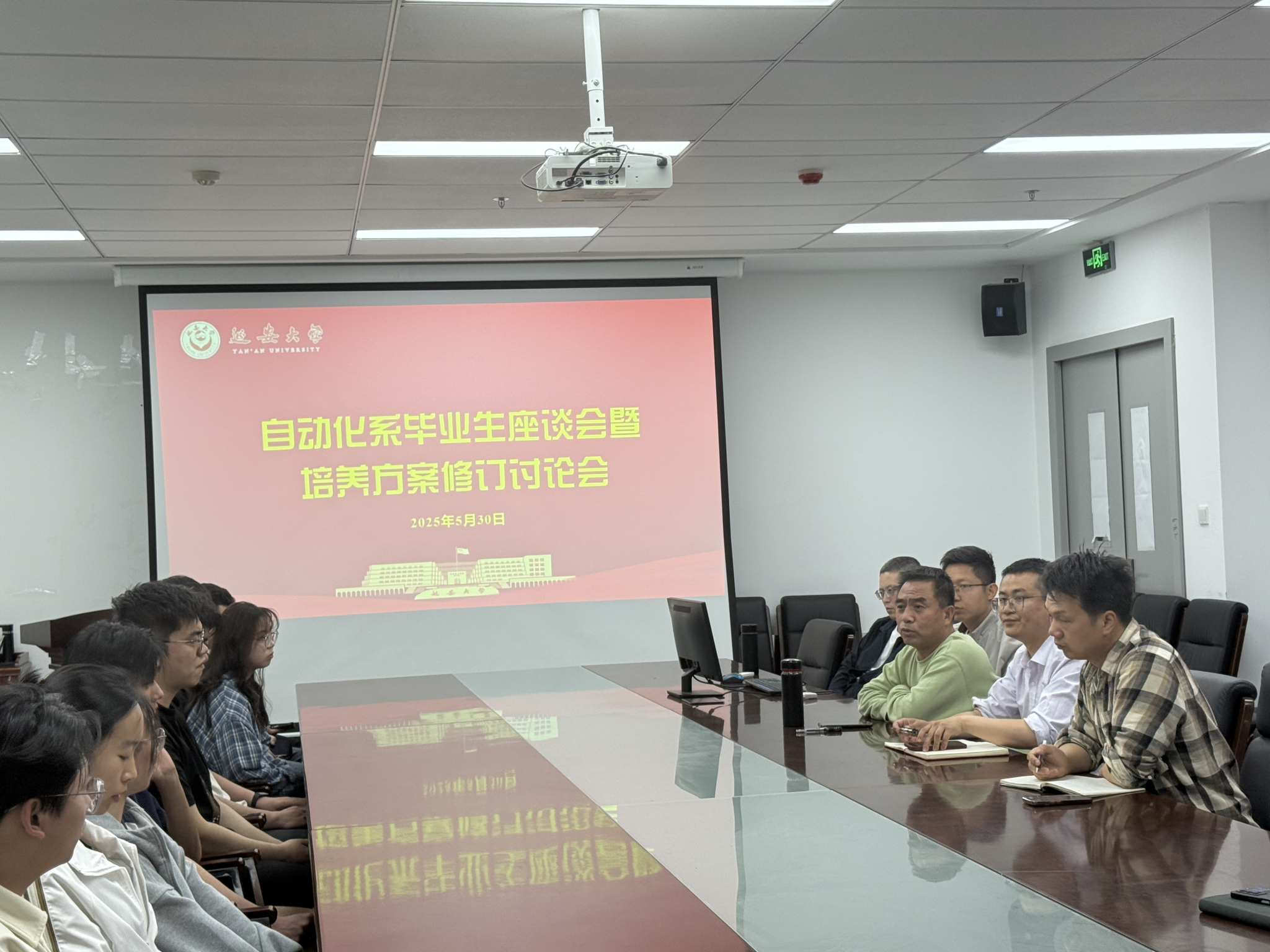 为全面优化本科人才培养体系,深入了解自动化专业的培养方案执行情况以及学生对课程设置和实践教学的反馈意见,jcjc5500公海贵宾会自动化系于2025年5月30日上午召开了毕业生座谈会暨25版培养方案修订讨论会。会议由自动化系主任杨延宁教授主持,教学副院长何智慧教授、教学秘书杨智敏教授、部分骨干教师代表以及20余名2025届自动化系毕业生代表参加。与会师生围绕“如何优化课程教学实施”、“如何完善2025版培养方案”两大主题展开深入交流,共同探讨教学改革与人才培养的创新路径。